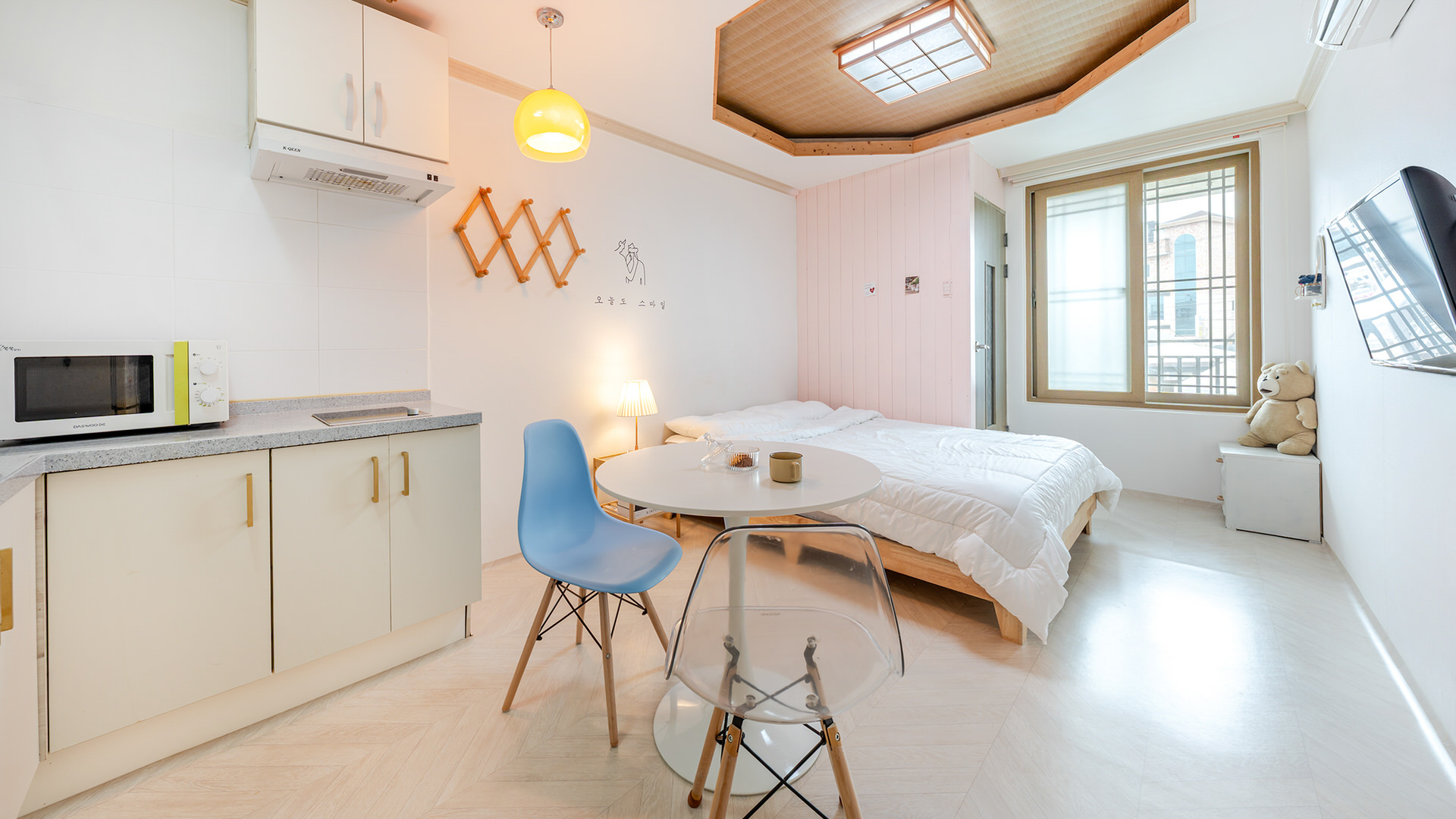 - 집기품목 : 욕실용품, 남녀공용, TV, 금연, 냉장고, 에어컨, 전기밥솥, 취사시설/도구, 와이파이, 식탁, 전자레인지, 드라이기, 인덕션, 소화기, 일산화탄소 감지기, 화재 감지기, 샴푸, 바디워시, 린스, 스파/월풀, 산전망