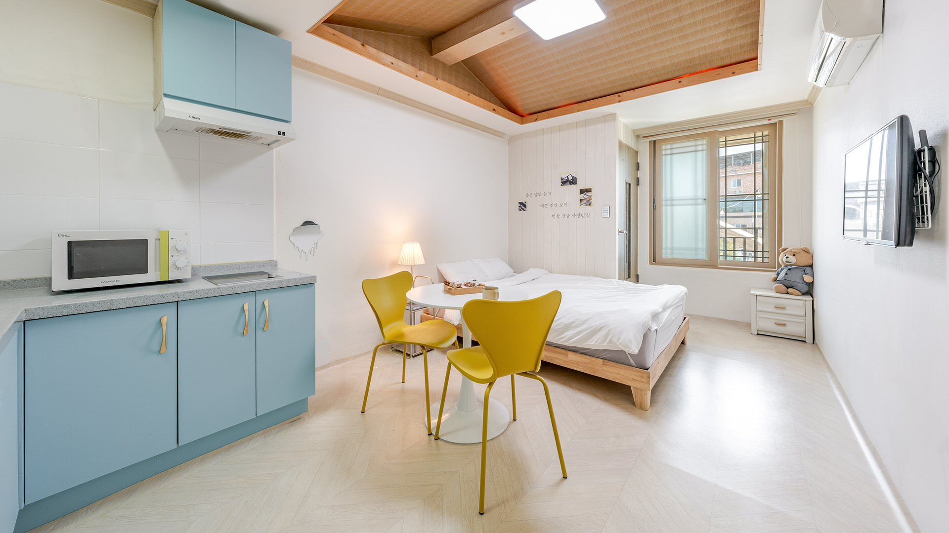 - 집기품목 : 욕실용품, 남녀공용, TV, 금연, 냉장고, 에어컨, 전기밥솥, 취사시설/도구, 와이파이, 식탁, 전자레인지, 드라이기, 인덕션, 소화기, 일산화탄소 감지기, 화재 감지기, 샴푸, 바디워시, 린스, 스파/월풀, 산전망