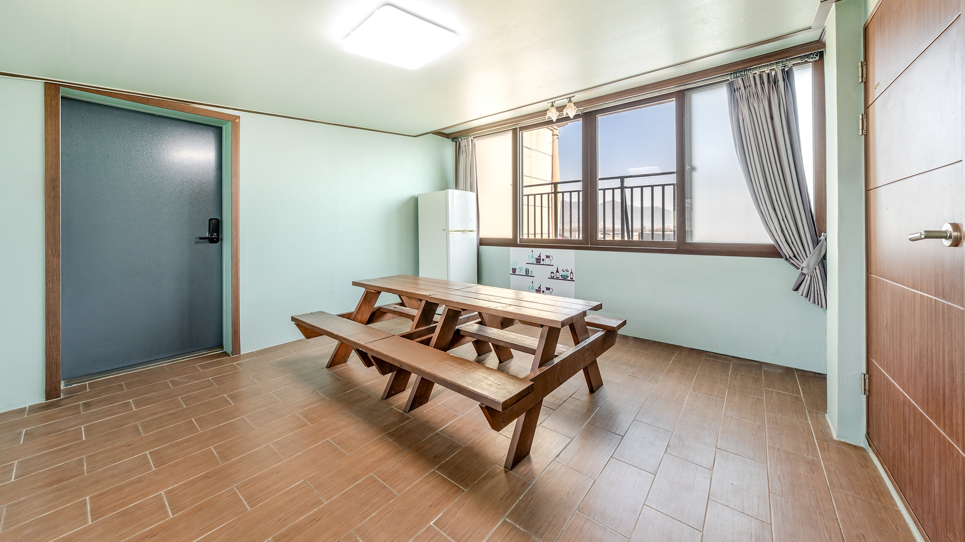 - 집기품목 : 욕실용품, 남녀공용, TV, 금연, 냉장고, 에어컨, 전기밥솥, 취사시설/도구, 와이파이, 식탁, 전자레인지, 드라이기, 인덕션, 소화기, 일산화탄소 감지기, 화재 감지기, 샴푸, 바디워시, 린스, 산전망